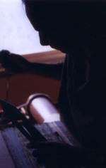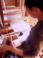 新潟県十日町テクノスクール織布科にて、伝統的な絹織物、絣織物の全工程を学ぶ。